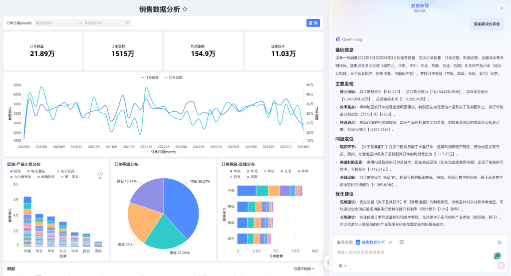- 自然语言生成图表:用户只需输入“上月华东区新能源车销量环比变化”,系统即可自动识别时间、区域、指标,并生成带趋势线的组合图表,准确率超92%。